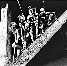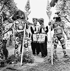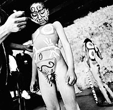 | ▲火神祭典也是男子汉炫示雄性力量的场合,这些火神的子民乔装成原始人的形态,尽情展示人类最本能的一面。 |