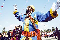 | ▲乐队不间断地演奏两三个小时,身佩长刀的指挥算是最累的人。 |