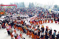 | ▲踏歌起舞,阵势壮观。 |