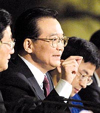 温家宝:瑞士前驻中国大使曾经说过我的脑子像computer(电脑),我的脑子里确实装了许多数字。这些数字有使我高兴的,也有使我忧虑的。譬如说,中国改革开放以来,GDP的增长速度年均在9%以上;中国近5年尽管受到亚洲金融风波的影响,GDP的增长年均在7.7%,去年达到8%。目前中国的外汇储备达到3000亿美元等等,这些是使我高兴的。但是,有些数字恐怕连记者也不完全清楚,比如中国的劳动力有7亿4千万,而欧美所有发达国家的劳动力只有4亿3千万。中国每年新增劳动力1000万;下岗和失业人口大约1400万;进城的农民工一般保持在1亿2千万。中国面临巨大的就业压力。中国13亿人口有9亿农民,目前没有摆脱贫困的3000万左右,这是按每年人均收入625元的标准计算的。大家知道,这个标准是低水平的,如果标准再增加200元,农村贫困人口就是9000万。中国东西部差距很大,大家恐怕只是从概念上了解。我想说一个数字,中国沿海五六个省市GDP超过全国GDP总值的50%。这几个数字,已经点出了三个问题:农村问题,就业和贫困人口的问题,东西部地区差距问题。因此,当好中国的总理不容易。如果要我说现在的心情,我觉得身上的担子有千钧重。