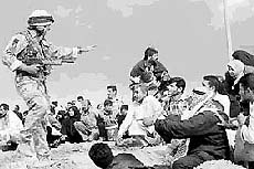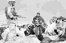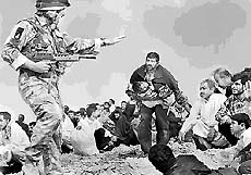 作为时报派往伊拉克前线的摄影记者,布莱恩沃斯基3月30日传回的英军士兵和伊平民的照片,曾令图片编辑激动不已,这是足以竞争普利策奖的作品啊!时报将它刊登在4月1日头版的同时发往下属其他报社,有的还在头版将图片放大到六栏。
