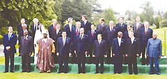 上图:6月1日,国家主席胡锦涛在法国埃维昂出席“南北领导人非正式对话会议”时,和与会各国领导人及国际组织负责人合影。