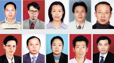 第五届“中国十大杰出青年志愿者”:莫锋、朱朝枝、冯艾(女)、叶榄、李汶凯(上排从左至右);秦希燕、马海军、张静(女)、张立国、陈立新(下排从左至右)。新华社发 |