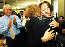43岁的女摄影记者卡罗琳?科尔又一次接受了别人的祝贺。19张报道利比里亚内战的照片使她为《洛杉矶时报》赢得了2004年普利策特写照片奖。刚刚从海地和伊拉克采访归来的卡罗琳说,在利比里亚的报道是一个大题目,这是她的工作。