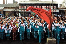 ▲北京行知打工子弟学校的升旗仪式。(2004年2月16日)本报记者 柴继军摄