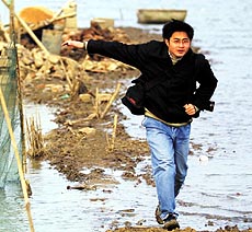 ▲在灾后淮河岸边。