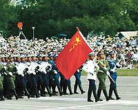 第一个通过主席台的是香港驻军三军仪仗方阵,这支护卫着火红军旗的部队,曾被中央军委授予“突击英雄连”荣誉称号,多次接受军委、总部、军区首长的检阅,参加过’97香港回归中英防务交接仪式等重大庆典活动。