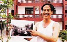 ▲12年后,邓型成成了邓小平故居景点的摄影师。随着前来瞻仰的游客与日俱增,他和其他8位摄影师轮班在景点为参观者摄影留念。46岁的邓型成开心地说:“过去摆地摊一天最多赚10多元,现在一天收入400元,致富全靠邓小平!”