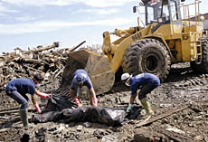 | ▲1月9日,海啸过去十几天,班达亚齐街头废墟下仍不断有遇难者尸体被清理出来。 |