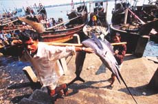 ▲1月26日,希莱特的渔民在夜间鱼市里兜售刚刚捕获的水产品。全国大约有120万人从事渔业的捕捞和加工。