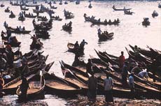 ▲1月16日,达卡老城布里甘加河的渡口异常繁忙,轻便的小船以低廉的价格运送往来的旅客和货物。