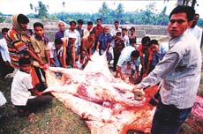 ▲1月22日是穆斯林的宰牲节,公路两旁到处都可以看到人们在宰杀牛羊。