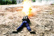 次日,防化营官兵的身影又出现在某化工厂,在浓烟滚滚的车间,战士们实施紧急救援:疏散工人、抢救物资、处理泄露的有害物质……这样的实战演练,锻炼了工人们在心理和行动上的防范能力,也提高了官兵们快速反应的军事素质。