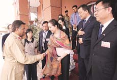 ▲4月7日,巴基斯坦总统穆沙拉夫接见代表团部分成员。
