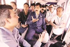 ▲4月3日,在前往巴基斯坦钢铁厂参观的途中,两国青年亲切交谈。