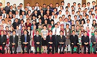 上图:7月22日,中华全国青年联合会第十届委员会第一次全体会议、中华全国学生联合会第二十四次代表大会在北京人民大会堂开幕。会前,党和国家领导人胡锦涛、吴邦国、温家宝、贾庆林、曾庆红、黄菊、吴官正、李长春、罗干等亲切会见全体委员和代表。新华社记者