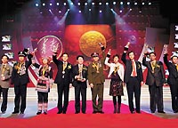 照片:10位获奖者向观众致意。本报记者 李建泉摄