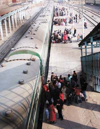 南站运行的列车以京广线上的慢车为主,停靠的车站大都是一般特快列车不停的小站,“‘民工流’是这个车站客流的最大特点,‘春运’期间就更是如此了”,客运车间的蒋副主任说。