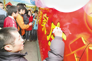 |        1月29日,浙江工业大学为寒假、春节期间留守校园的大学生们开办的“留家庄”再度开庄,98名大学生在“留家庄”的题板上当场签名报名加入。据了解,由该校团委和勤工助学指导中心创办的“留家庄”已是第三年开庄,在寒假开庄期间,将为报名入庄的留校学生组织文化娱乐、亲情一线牵、新春送温暖、乡音免费热线、共进年夜饭等丰富多彩的活动,并为每位学生联系一份勤工助学岗位,争取社会实践机会,让留校大学生度过一个喜庆、快乐且有收获的寒假。    李忠摄     |