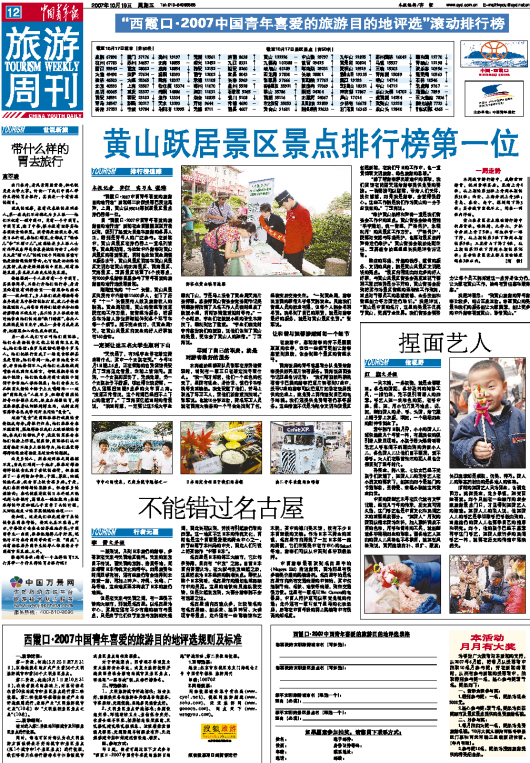 “西霞口2007中国青年喜爱的旅游目的地评选”滚动排行榜