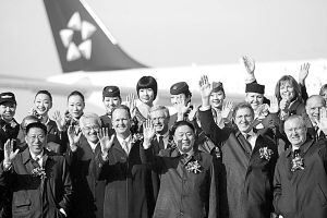 12月12日,在即将启用的首都机场第三航站楼前,包括国航、上航在内的星空联盟成员的CEO向人们挥手致意。当天,星空联盟首席执行官杨·阿布莱奇宣布:中国国际航空股份有限公司、上海航空股份有限公司正式加入星空联盟。据了解,星空联盟是世界上规模最大的航空联盟,麾下有美联航、全日空、汉莎等知名的航空企业。由于中国两家航空公司的加盟,其成员壮大到19家,所属航空公司航线涵盖全球五大洲、160个国家、897个目的地。本报记者陈剑摄