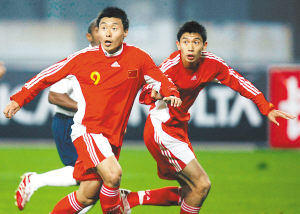 12月13日,中国国奥队与美国国奥队的热身赛在长沙贺龙体育场展开,双方最终以0∶0握手言和。其中朱挺的头球击中横梁,终场前他还错失一次单刀破门良机。郭新摄