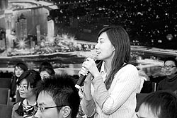 杨学娟代表中国传媒大学的同学第一个提问,她说:“我们对甲天下的桂林山水非常熟悉,也通过一些宣传了解了阳朔文化,近期又有媒体报道了龙脊梯田,对于这个地区的开发我们并不是很清楚,希望有关负责人能给予介绍。”“非常感谢大家关注著名的旅游城市桂林,我很高兴回答这个问题。”桂林市旅游局局长李志刚说,“最近媒体上,特别是英国电视台BBC推出龙脊,这也是能够体验少数民族文化和生活方式的景区。这是壮族人在600多年前依山势建造的梯田,非常美丽,被称为世界一绝,特别受到青年人的喜爱,背包旅行者的喜欢,还有欧美游客的喜欢。一个法国人在龙脊住了几年,办了一个网站,使龙脊梯田在世界上名声大振。游客可以在上面吃壮族农家饭、体验他们的生活方式,欢迎青年的大学生朋友去旅游。”