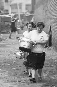 照片:2007年7月17日,长春,家住在绿园区的锦江花园三区的张女士带着女儿到小区外的井里提水。作为长春市重要水源地之一的新立城水库,夏天突现蓝藻,并迅速繁殖。当时长春市已停止取用该水库源水,并紧急调用其他水源,但依然有部分城区受影响停水。郭新摄