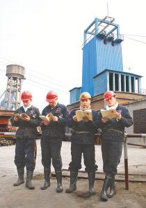 1月17日,安徽省淮北矿业集团公司朱庄煤矿的4名矿工正在阅读学习《劳动合同法》读本。目前,安徽淮北矿业集团公司工会将《劳动合同法》读本发放到每个班组,通过班组集中学习、矿工自学,让矿区9万多名矿工了解掌握《劳动合同法》内容。 谢正义摄