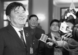 照片:3月8日,十一届全国人大一次会议举行第二次全体会议,卫生部部长陈竺在人民大会堂内面对众多媒体回答有关医疗卫生体制改革的问题。在今年两会上,这位无党派人士部长倍受关注。 本报记者 赵青摄