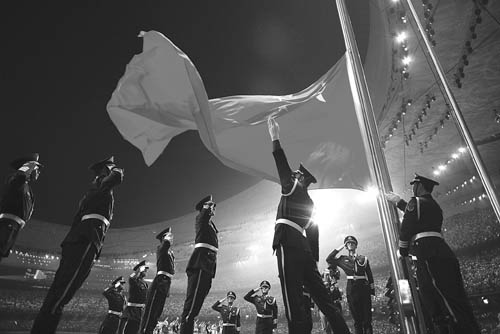 2008年8月8日,五星红旗在鸟巢首次升起。