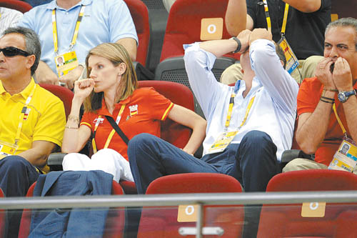 8月9日,西班牙王储和王妃观看女子篮球西班牙队与中国队的比赛。CFP供图