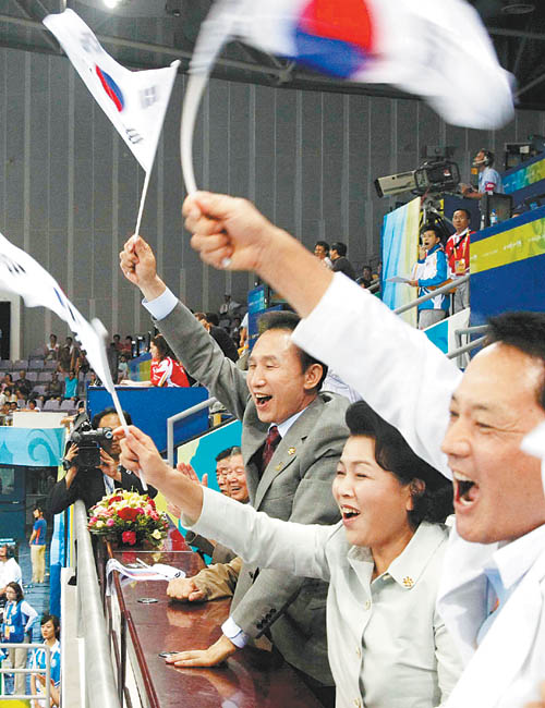 于是,一贯在意形象的韩国总统李明博,也带上夫人,悄悄跑到手球比赛现场,摇着小旗子为自己国家的队员喊加油。甚至在回国后,一听说本国运动员拿了金牌,他干脆中断会议,拨通队员手机,好好夸上一番。
