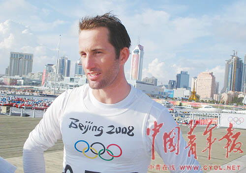 在到处都是帅哥美女的青岛帆船赛场,31岁的英国人安斯雷绝对是头号偶像。今天下午,这位悉尼和雅典奥运会金牌得主在本报记者的采访本上,为北京奥运会写下一句感言,竟然是:“感谢青岛极好的海港和啤酒。”