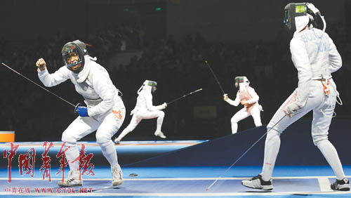 场上50岁的栾菊杰正挺剑与匈牙利人穆罕默德·艾达鏖战,时间过半,栾菊杰步履渐现沉重,出剑也没有开始那样果断。