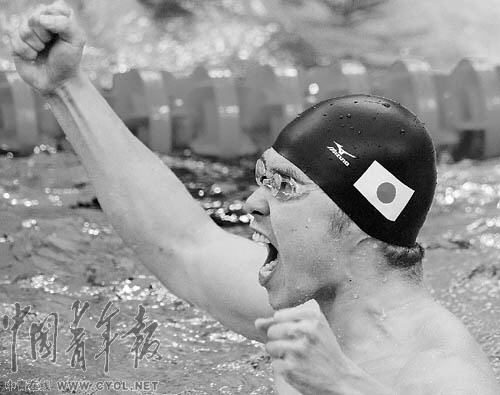 8月11日,北岛康介在男子100米蛙泳比赛中夺冠。本报记者 刘占坤摄 |