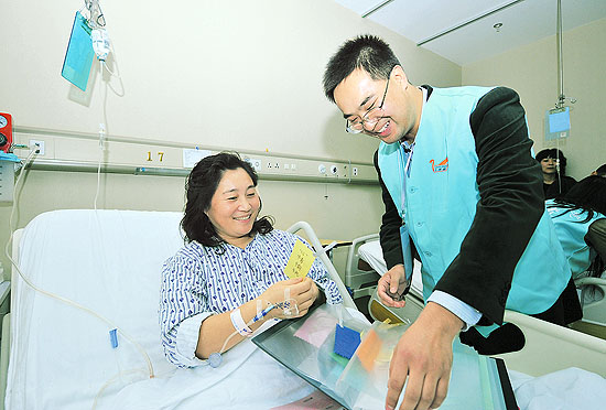 当日,由卫生部、中宣部、教育部、民政部、团中央、全国妇联、全国总工会、中央文明办等单位联合举办的“2009年国际志愿者日‘志愿服务在医院’主题活动”在北京大学人民医院举行启动仪式。 新华社记者 杨光摄