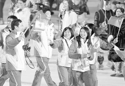 当地时间2月12日,第21届冬季奥林匹克运动会开幕式在加拿大温哥华举行。这是中国体育代表团在开幕式上入场。