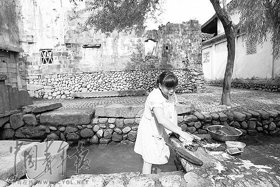 5月21日,前童古镇,一名妇女正在河边洗衣服。前童古镇位于宁海县城西南14公里处,是浙东地区保存至今的一座最具儒家文化古韵的小镇。陈剑摄