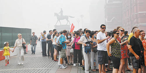 莫斯科游客不相信烟雾