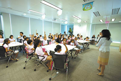 同样是第一次来到大上海的浙江省淳安县富文乡中心小学五年级小朋友朱丽娜则学会了乐施和观察,也学会了要用正确的方式帮助别人。想到可以马上参观世博园,饱览各国高科技和风情,朱丽娜真是高兴极了。