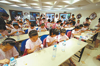 来自遥远的银川市,西夏区兴泾回民四小的马燕燕小朋友在此次“春蕾看世界”活动中体会到和家乡完全不同的都市风情,在意大利馆,古董老爷车、超大高跟鞋、墙上的交响乐队等都令她目不暇接连连惊叹“世博真伟大真有魅力!”