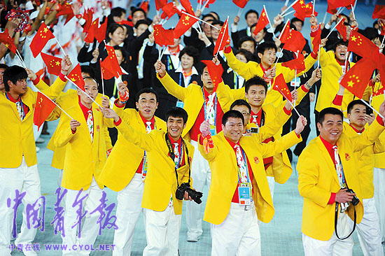 中国体育代表团入场。本报记者 刘占坤摄
