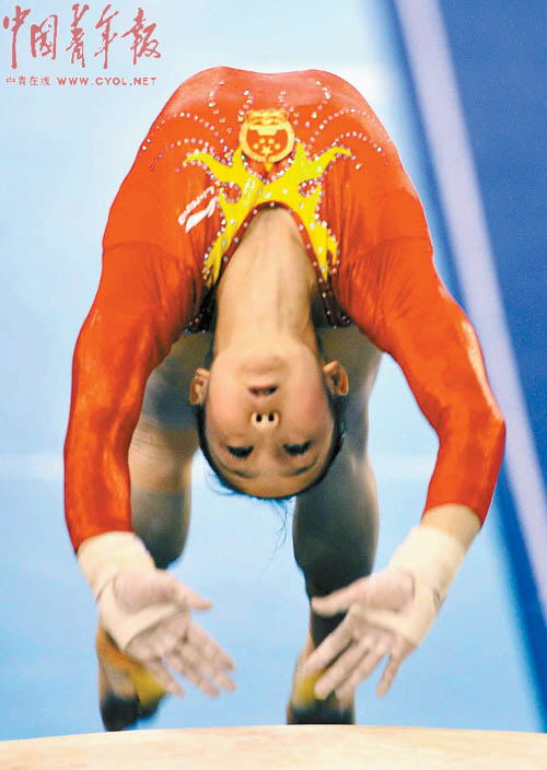 11月14日,中国选手黄秋爽在跳马比赛中。当日,在广州亚运会女子体操团体决赛中,中国队以总分234.150分的成绩夺得金牌。这也是中国体操队连续第10次赢得女团亚运金牌,实现了中国体育代表团自1974年参加亚运会以来在体操团体项目上的全胜战绩。