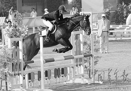 11 月24日,我国29岁的老将曹忠嵘历史性地夺得广州亚运会男子现代五项冠军。图为曹忠嵘在马术比赛中。本报记者 陈剑摄