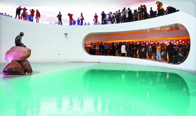 告别小美人鱼 10月31日,游客在丹麦馆看小美人鱼“最后一眼”。当日,2010年上海世博会闭幕,小美人鱼也将返回她的家乡。 新华社记者 李 颖摄 |