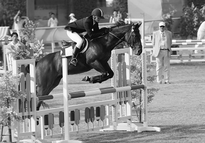 11月24日,我国29岁的老将曹忠嵘历史性地夺得广州亚运会男子现代五项冠军。图为曹忠嵘在马术比赛中。