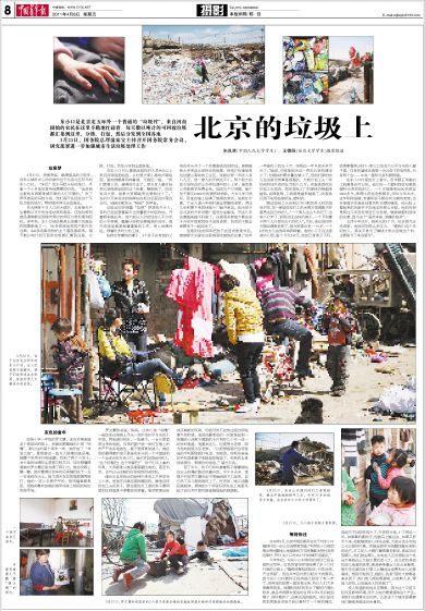作为拥有千万人口的大城市,北京每天产生着数以万计的生活垃圾和废品,这些垃圾和废品通常都运到城市周边的郊区分类处理和回收。多年来,东小口地区都是北京最大的废品收购集散地之一,700多家废品收购户驻扎在这里,由6条运载货物的主干道连接起来。每天数以吨计的可回收垃圾都汇集到这里,分拣、打包,然后分发到全国各地。