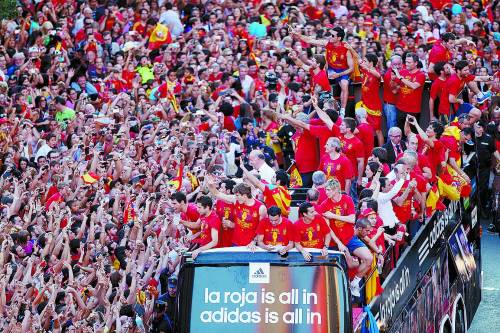 7月3日,夺得欧洲杯后的西班牙队回到马德里游行庆祝。CFP供图