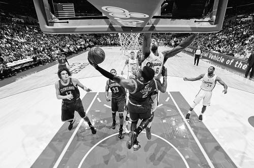 11月6日,NBA常规赛,骑士队以108∶101击败快船队。图为双方队员在篮下争夺。CFP供图